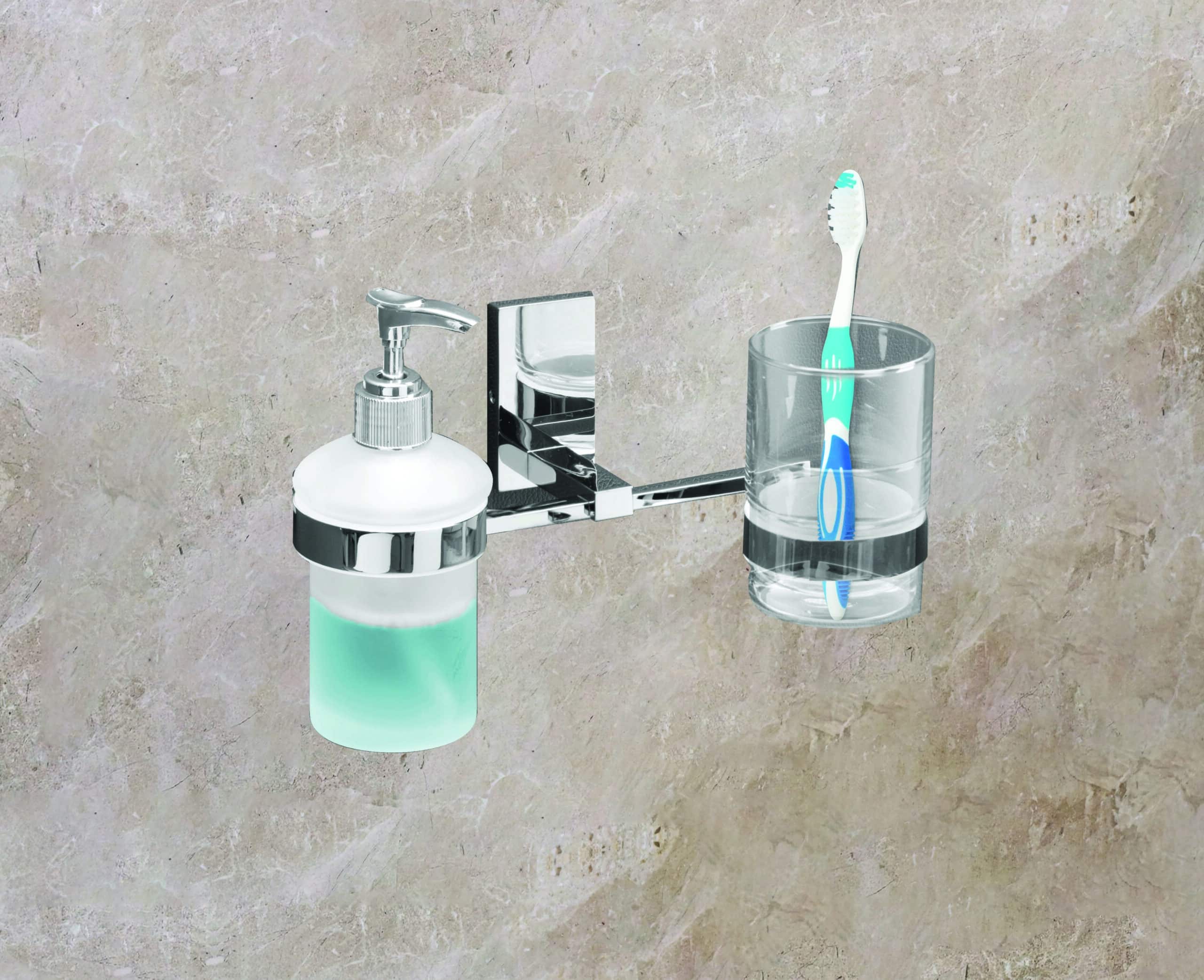 Introducing our Liquid Dispenser with Tumbler Holder, a seamless combination of convenience and elegance for your bathroom. Crafted with premium materials and a modern design, this multifunctional accessory offers a sleek dispenser for your liquid soap or lotion alongside a dedicated holder for your tumbler or toothbrush. Its space-saving design and sturdy construction ensure both practicality and durability, while its minimalist aesthetic effortlessly complements any decor. Elevate your bathroom organization with our Liquid Dispenser with Tumbler Holder, transforming your daily routine into a luxurious and efficient experience.